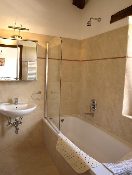 fully tiled bathroom to master bedroom with wall-hung wc, wash